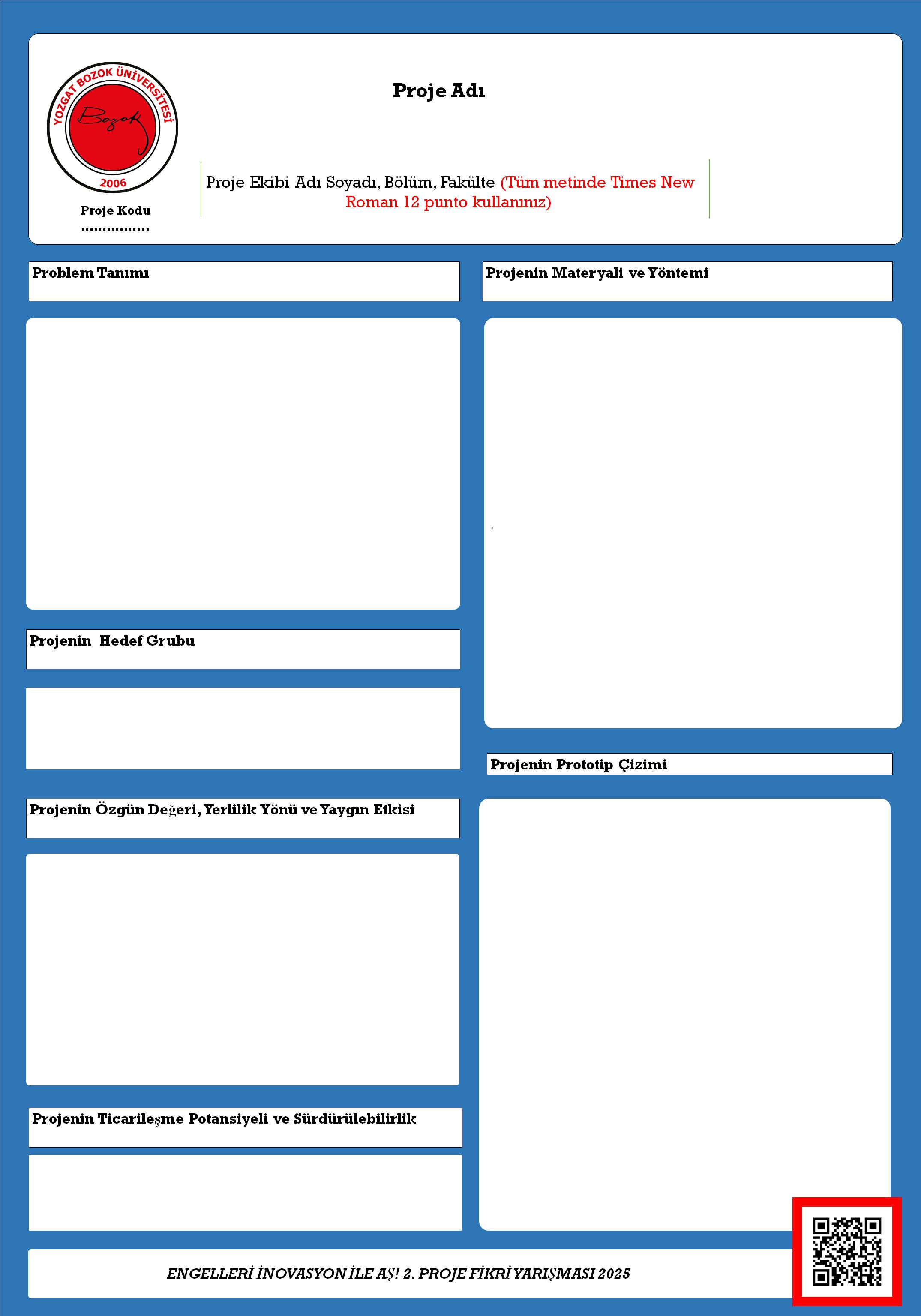 Başvurular yalnızca yarışmanın web sitesi üzerinden ve belirtilen son başvuru tarihine kadar kabul edilecektir. Yarışmacılar projelerini, duyurulan poster sunum formatına uygun şekilde hazırlayarak sisteme yüklemelidir. Başvuru süreci tamamlandıktan sonra tüm projeler, yarışma ölçütleri doğrultusunda jüri tarafından değerlendirmeye alınacaktır.